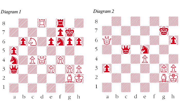 35 … bxc5 allows 36 Qd6 when White will break into Black’s camp on f7. However, the move is a serious oversight and White should have opted for 35 Ne5. 35 … Rxd8 36 Nxd8 Nxc5 37 Qd6 Qd3 Karjakin misses a chance. 37 … Qa4 wins as the black queen can return to d7 to defend. After 38 Qxb6 Ncd7 Black is a clear pawn ahead. 38 Nxe6+ Now White is back in the game. 38 … fxe6 39 Qe7+ Kg8 40 Qxf6 a4 41 e4 Qd7 42 Qxg6+ Qg7 43 Qe8+ Qf8 44 Qc6 Also possible is 44 Qg6+ Kh8 45 e5 a3 46 Qb1. 44 … Qd8 45 f5 a3 46 fxe6 Kg7 47 e7 Safer is 47 Qb5 Nxe6 48 Qb4 when White will never be in danger. 47 … Qxe7 48 Qxb6 Nd3 49 Qa5 Carlsen had to jettison a pawn with 49 e5 to make room for his bishop to operate. 49 … Qc5 50 Qa6 Ne5 (see diagram 2) 51 Qe6 The final blunder. 51 h4 was obligatory. 51 … h5! An inspired winning move. Black plans to defend against perpetual check by placing his knight on g6 to shield his king on h6. 52 h4 a2 White resigns 53 Qxa2 Ng4+ 54 Kh3 Qg1 55 Bf3 Nf2+ wins the queen.