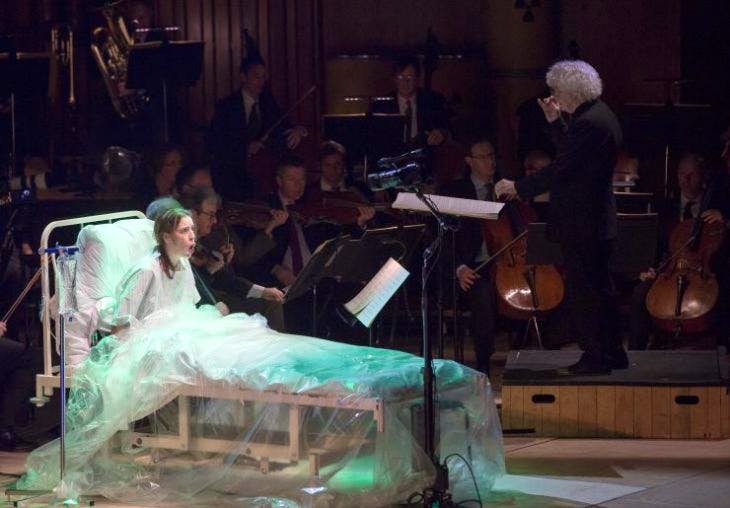 There are satisfying portrayals of pomposity and self-importance, with a special loathing manifest for bureaucrats (though no arts administrators are included, a sad omission), and the pursuit of happiness, whether from sex or alcohol, is doomed — but again, we knew that. The entertainment is provided by motor horns, generally wacky orchestral effects, and strenuous singing, though shortly after the start the pair Amando and Amanda (originally given more ‘adult’ names), sung by Ronnita Miller and Elizabeth Watts, give us a Così-like glimpse of illusory bliss. The largest personality is of course Nekrotzar, the personification of Death, a demanding role in every respect, and taken with great panache by Pavlo Hunka. The central victim of his taunts, Piet the Pot, provides much of the amusement, thanks to Peter Hoare. And the countertenor Anthony Roth Costanzo misuses his excellent voice brilliantly as Prince Go-Go, a Gilbertian conception, though Gilbert is far more subversive than this libretto. But Sullivan is far less subversive than Ligeti, and one wishes his genius had had a text to match. As it is, the precision and force of this great orchestra under Rattle made it a memorable evening, though one I don’t particularly want to repeat.