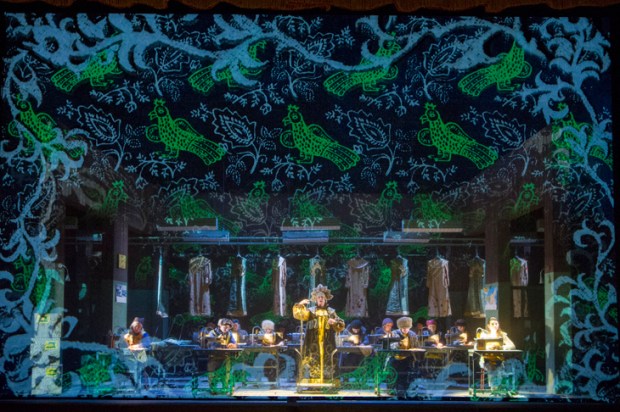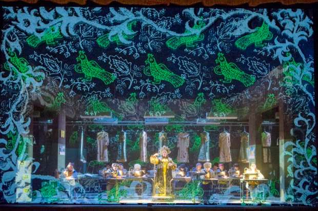 Give or take a few cuts, John Fulljames’s new production for Opera North takes the piece seriously — and that includes the supernatural element, which can surely never in this opera’s 135-year history have looked so fantastic. In Will Duke’s animated video projections frost curls its tendrils around the stage, embroidered flowers blossom and twine, and Aoife Miskelly’s Snow Maiden trails flurries of snow. The designs swerve all over Russian history, from the Ballets Russes to the Eastern Bloc bleak-chic of everyone’s favourite totalitarian dictatorship, the USSR (fluorescent strip lights having replaced trenchcoats as the great operatic design cliché of the moment). And in its own playful way, it works, though the ugliness of the modern scenes (the village girls work in a clothing factory) jars a bit. Fulljames and his team create a different visual identity for each of the story’s various layers, and the business of decoding the costume changes can be something of a distraction.