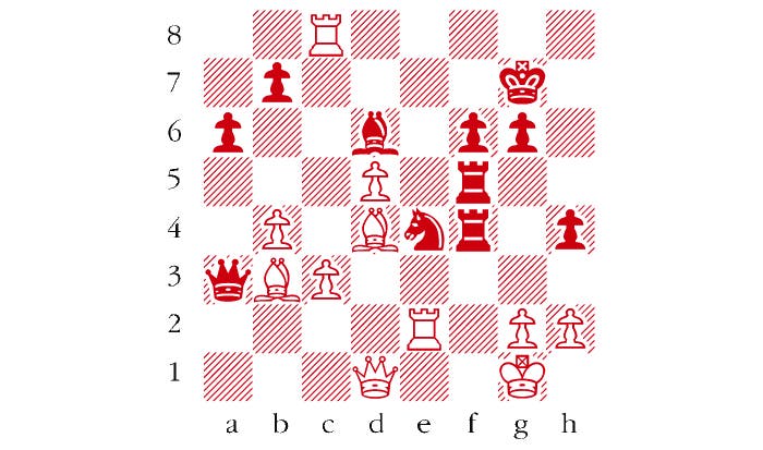 Black to play. This position is from Morozevich-Sadler, Reykjavik 1999, a game from Sadler’s heydey, when he was regularly beating the best players in the world. How did he finish off?