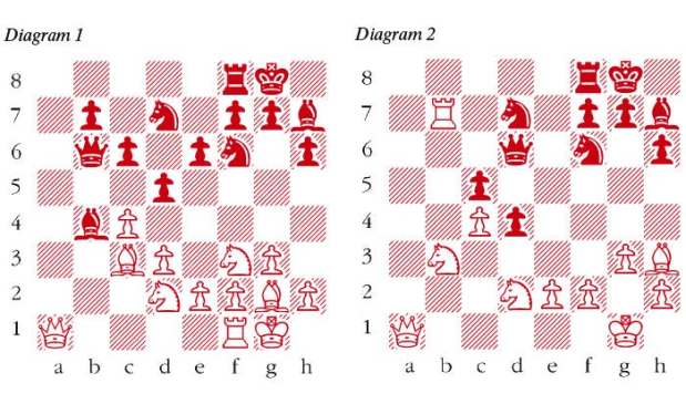 1 Nf3 d5 2 b3 Bf5 3 Bb2 e6 4 d3 h6 5 Nbd2 Nf6 6 c4 c6 7 g3 Be7 8 Bg2 0-0 9 0-0 Nbd7 10 a3 a5 11 Qb1 Bh7 This is a classic position from the Réti Opening. Indeed, the black formation was introduced by Emanuel Lasker in his game as Black against Réti himself at New York 1924, the tournament where Réti’s Opening truly hit the headlines. 12 b4 axb4 13 axb4 Qb6 14 Bc3 Rxa1 15 Qxa1 Bxb4 (see diagram 1) White can sacrifice his b-pawn with impunity, since he will easily regain it and invade the black camp with his rook. The strategic point of White’s play is to try, as far as possible, to restrict the activity of Black’s bishop on h7. 16 Bxb4 Qxb4 17 Rb1 Qd6 18 Rxb7 e5 19 d4 In the light of my previous comment this thrust might seem odd. However, although Black’s bishop has now been apparently liberated it is biting on thin air. Its pseudo-activity is more than compensated by White’s increased mobility. 19 … exd4 20 Nxd4 c5 21 N4b3 d4 22 Bh3 (see diagram 2) 22 … d3 Apparently powerful but after White’s reply, the black bishop is once again biting on granite. 23 e3 Ne5 The best chance was 23 … Rb8 to reduce White’s attacking units. 24 Bg2 Rc8 25 f4 Neg4 26 e4 Black’s pieces have found themselves in a terrible tangle and White now wins material. 26 … Re8 27 e5 Nxe5 28 fxe5 Rxe5 29 Rb6 Qe7 30 Rb8+ Ne8 31 Bc6 White deals with Black’s threats by ignoring them. The following transaction leaves Black hopelessly behind on material. 31 … Re1+ 32 Qxe1 Qxe1+ 33 Nf1 Black resigns