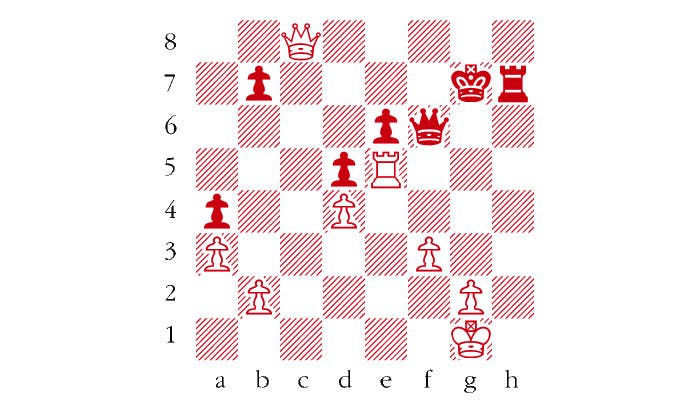 Black to play. This position is from Kozera-Wang, Varsity Match 2016. White has powerful threats and Black has only one way to stay in the game. Can you see it? Answers to me at The Spectator by Tuesday 14 March or via email to victoria@spectator.co.uk. There is a prize of £20 for the first correct answer out of a hat. Please include a postal address and allow six weeks for prize delivery.