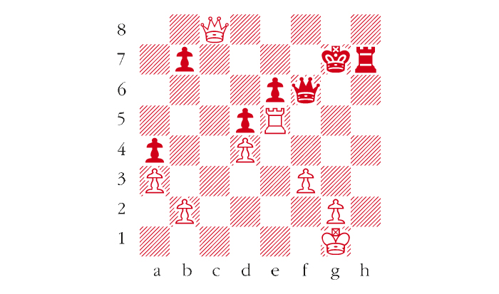 Black to play. This position is from Kozera-Wang, Varsity Match 2016. White has powerful threats and Black has only one way to stay in the game. Can you see it? Answers to me at The Spectator by Tuesday 14 March or via email to victoria@spectator.co.uk. There is a prize of £20 for the first correct answer out of a hat. Please include a postal address and allow six weeks for prize delivery.