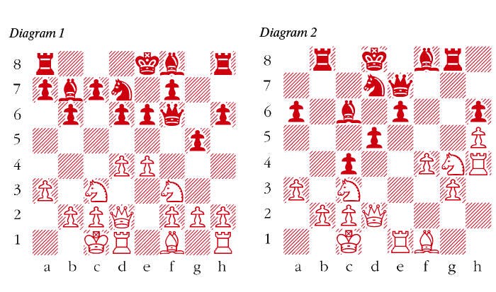 1 d4 Nf6 2 Nf3 e6 3 Bg5 h6 4 Bxf6 Qxf6 5 e4 b6 6 a3 The idea of this is to be able to play Nc3 without fearing … Bb4, and then castle queenside. 6 … Bb7 7 Nc3 d6 8 Qd2 Nd7 9 0-0-0 g5 (diagram 1) This caused some astonishment at the time, although with the passing of the years this idea no longer comes as a surprise in such positions. It prepares … Bg7, but White must also must be on his guard against the … g4 thrust. 10 Nb5 Kd8 Giving up the right to castle and thus quickly coordinate his pieces, but it is almost forced and is not easy for White to exploit it. 11 h4 g4 12 e5 Seeking to open lines to try to exploit the situation of the black king. 12 … Qg7 13 Ne1 a6 14 Nc3 d5 15 f4 f5 16 exf6 This opens the position for Black’s bishops, but also exposes Black’s weaknesses on e6, e5, etc. 16 … Qxf6 17 h5 c5 18 dxc5 bxc5 19 g3 Bc6 20 Rh4 Rg8 21 Nd3 Rb8 White wants to capture the g4-pawn and Black is preparing his counterplay against the white king. 22 Nf2 c4 23 Nxg4 Qe7 The threat is to win immediately with 24 … Qxa3! 24 Re1 (diagram 2) 24 … Rxb2 A good decision; objectively it is not winning, but White has to defend very well, and that is not a simple task. 25 Kxb2 Qxa3+ 26 Kb1 Bg7 27 Ne5 Closing the long diagonal is not sufficient. It was essential to play 27 Re3! and although this looks bad and Black has several attractive possibilities, there does not appear to be anything decisive: for instance, after 27 … d4 28 Nb5 Qc5 White seems to hold miraculously with 29 Qa5+! Ke7 30 Na7!! Rb8+ 31 Kc1 Qxa7 32 Qa3+ Nc5 33 Re5! Bxe5 34 Nxe5. 27 … Kc7 With his previous move Black also made way for his rook to transfer to the queenside. 28 Nb5+ This closes the b-file, but Black is now only the exchange down and the attack is still raging; now the a-file is opened up. 28 … axb5 29 c3 Bxe5 30 fxe5 Rxg3 31 Rh3 Rg5 32 Rhe3 Nc5 33 Rf3 Be8 Controlling f7. Black has no need to hurry, although here he could have played 33 … Na4, since 34 Rf7+? Kb8 35 Re3 loses to, amongst other things, 35 … d4 36 cxd4 Be4+. 34 Qa2 Qxa2+ 35 Kxa2 Rxh5 36 Ka3 Ne4 37 Rf8 Bd7 38 Kb4 Rxe5 39 Ra1 Rf5 40 Rh8 The endgame after 40 Rxf5 exf5 41 Bg2 h5 would be sheer torture for White, but the move played loses more easily. 40 … Rf2 White resigns There is no defence against 41 … Rb2+: 41 Rb1 Ra2, or 41 Ra7+ Kb6 42 Rxd7 Rb2+ 43 Ka3 Rb3+ 44 Ka2 Nxc3+ and mate next move.