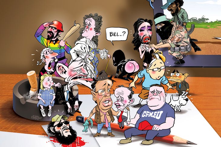 Like many Speccie contributors, I was privileged to know Bill Leak personally, although for only about ten months.But through no merit of my own, I felt as if I’d known him for ten years, such was the nature of the man’s friendship and personality. And so I have lost not only a hero and a fellow commentator, but also a kind friend. Despicable mandarins such as Gillian Triggs and – as Bill used to call him – Dr Tim Southpossum – have lost a punching bag, albeit one that hit back. The Left has lost someone to blame for all the ills of the world. And all Australians have lost a champion of free speech and human rights, whether they recognise it or not.