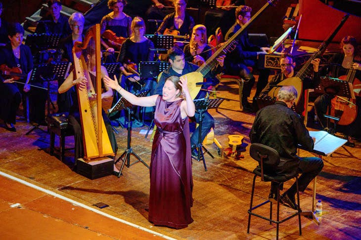 The opera was performed in a semi-concert version, which I am more and more inclined to hope is opera-in-general’s way forward. Minimal intrusion from directors, maximum concentration on the music and, therefore, in a production as skilful as this, the drama. The gods were dressed formally, the mortals in contemporary casual wear, apart from Penelope. No props, not even a bow to test the Suitors. That was quite ingeniously solved by having Penelope herself as the bow, though she did look, at that point, like the Statue of Liberty deprived of her torch. It enabled Ulisse, once he had strung the bow (no string), to enfold her, which was moving but which she wouldn’t have allowed until later. There was a lot of coming and going, which clarified the action, and together with the (blindingly bright) surtitles left one in no doubt where the plot had got to. It was a long evening, three hours and 40 minutes with a minuscule interval, and might have benefited from a little pruning, an ‘authentic’ suggestion, surely, though unthinkable for today’s high-minded executants.