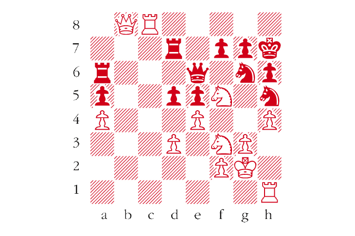 White to play. This is from Kramnik-Adams, Shamkir 2017. How did Kramnik complete his rout of the black position? Answers to me at The Spectator by Tuesday 16 May or via email to victoria@spectator.co.uk. There is a prize of £20 for the first correct answer out of a hat. Please include a postal address and allow six weeks for prize delivery.