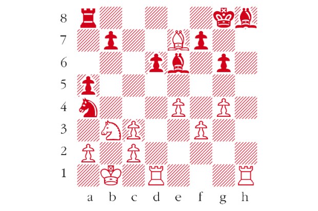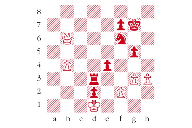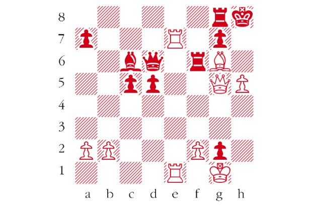 White to play. This is from Euwe-Fischer, New York 1957. How did Euwe capitalise on the threatening position of his queen? Answers to me at The Spectator by Tuesday 23 May or via email to victoria@spectator.co.uk. There is a prize of £20 for the first correct answer out of a hat. Please include a postal address and allow six weeks for prize delivery.
