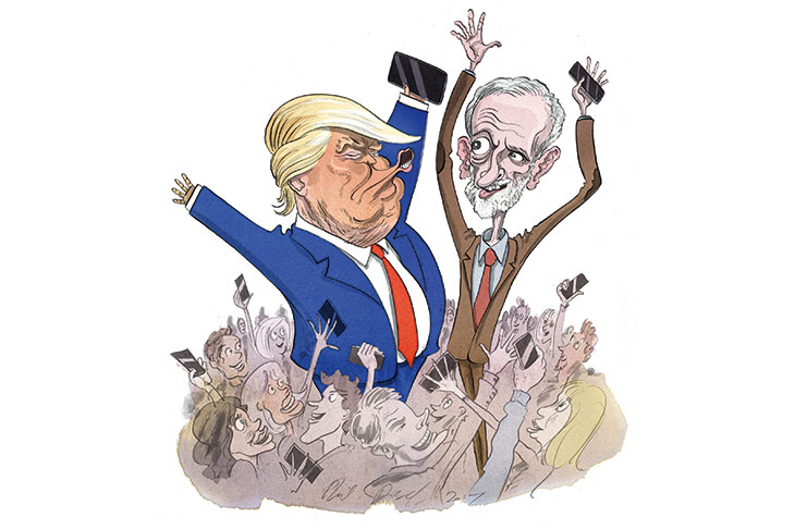 Yet far from condemning their parties to decades in the wilderness, Trump and Corbyn turned out to have had a much broader appeal than their predecessors. Their popularity was viral — ‘infectious’, as Corbyn called it on television last weekend. It didn’t just excite the angries and the radicals on the fringes; it infected the moderate middle, too. Swing voters were not put off by Trumpist or Corbynite radicalism; they were enticed.