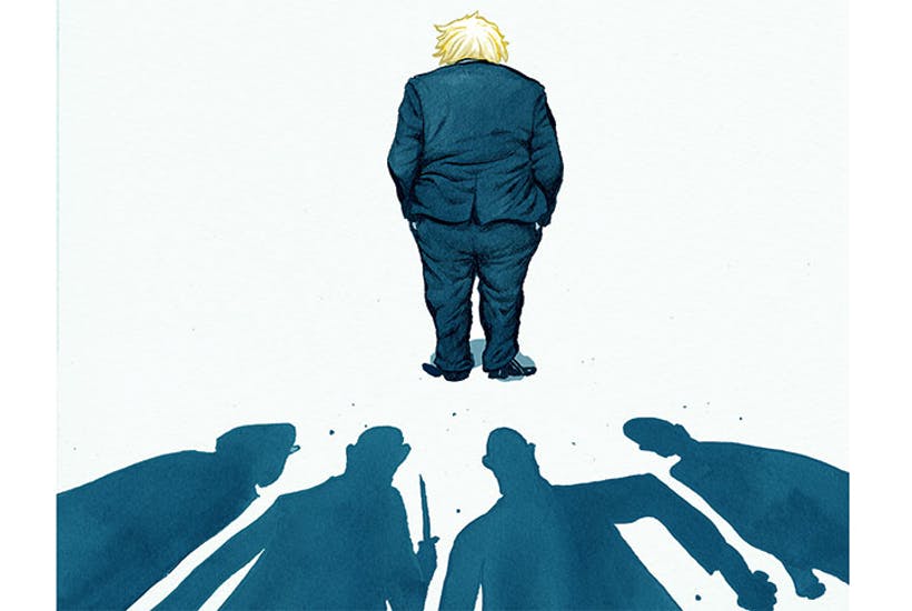 No one is more plotted against than Boris Johnson. When I asked one well-connected minister who he was backing for leader, he replied, ‘Whoever will stop Boris getting into the final two.’ The Foreign Secretary’s detractors in parliament — there is no shortage of them — are determined to leave nothing to chance. Tory party rules mean the final two candidates must fight a campaign among the members in the country, which would suit Boris’s campaigning style. So they intend to stop him long before it gets to that stage.