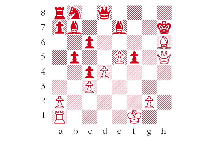 White to play. This is from Breyer-Esser, Budapest 1917. White has a multiplicity of tempting options but the best move forces mate in nine. What is it? Answers to me at The Spectator by Tuesday 22 August or via email to victoria@spectator.co.uk. There is a prize of £20 for the first correct answer out of a hat. Please include a postal address and allow six weeks for prize delivery.