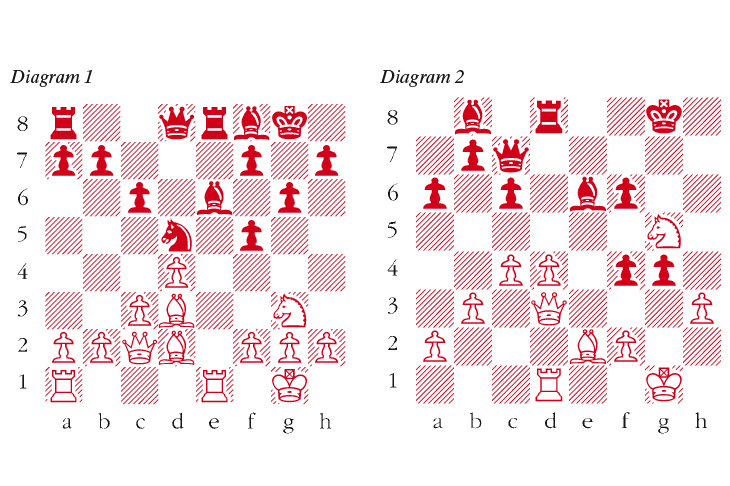 1 e4 c6 2 Nf3 More usual is 2 d4. 2 … d5 3 Nc3 dxe4 4 Nxe4 Nf6 Against the variation chosen by White this knight challenge is eminently feasible. In the variations emanating from 2 d4, some doubt can be cast upon Black’s willingness to disrupt his own pawn formation by developing the white king’s knight on e2. Here, of course, that option is no longer available. 5 Nxf6+ exf6 6 Bc4 Bd6 7 Qe2+ Be7 A loss of tempo but Black plans to bring his king’s rook to e8 when White in turn will have to waste time with his queen. 8 0-0 0-0 9 d4 Bd6 The bishop returns to an important diagonal. It is instructive to observe how White seems to suffer from problems based on possible alignment of Black’s dark-squared bishop and his queen in the b8-h2 trajectory. 10 c3 Na6 11 Qc2 Re8 12 Nd2 Nc7 13 Bd3 g6 14 Ne4 Bf8 15 Bd2 f5 16 Ng3 Nd5 17 Rfe1 Be6 (see diagram 1) 18 Nf1 White appears to be bereft of a plan. Instead of this retreat and the feeble weakening move that follows, White should store up energy with 18 Rad1. 18 … Bd6 The bishop returns to its natural post. 19 h3 Nf4 Even more aggressive is 19 … Qh4. 20 Bxf4 Bxf4 21 Nd2 Bd5 22 Rxe8+ Qxe8 23 c4 Be6 24 Nf3 Qd7 25 Rd1 Rd8 26 Qa4 a6 27 Qb4 Bb8 28 Be2 Qc7 Now Black’s queen and bishop are ideally aligned. 29 b3 g5 A bold attack but Black’s king is so well surrounded by a hedge of pawns that he can do this with impunity. 30 Qd2 f6 31 g3 f4 32 g4 h5 33 Qd3 hxg4 34 Nxg5 (see diagram 2) White may have been relying on this since 34 … fxg5 fails to 35 Qg6+. However, Black’s next is a complete refutation. 34 … Bc8 35 Ne4 If 35 Qg6+ Qg7 leaves White with a hopeless endgame. 35 … f3 36 Bxf3 gxf3 37 Nxf6+ Kh8 38 Kf1 Bxh3+ 39 Ke1 Qe7+ 40 Kd2 Qxf6 41 Kc1 Bf4+ 42 Kb2 Rxd4 43 Qc3 Rd2+ White resigns