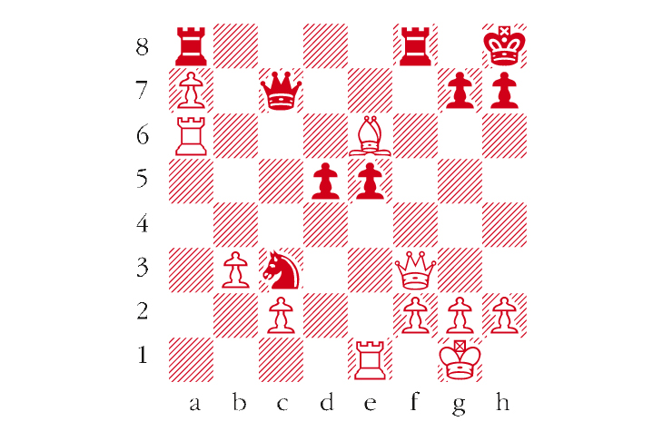 White to play. This position is from Kramnik-Andreikin, Tal Memorial 2018. White now finished off quickly. What did he play? Answers to me at The Spectator by Tuesday 20 March or via email to victoria@spectator.co.uk. There is a prize of £20 for the first correct answer out of a hat. Please include a postal address and allow six weeks for prize delivery.