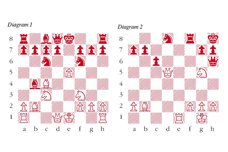 1 e4 e5 2 Nf3 Nc6 3 d4 exd4 4 c3 dxc3 5 Bc4 cxb2 This is certainly playable but capturing so many pawns is dangerous. 5 … d6 and 5 … Nf6 are safer lines. 6 Bxb2 Bb4+ 7 Nc3 Nf6 8 e5 Acting immediately in the centre. After 8 0-0 0-0 it is hard for White to generate much play for the pawn as 9 Nd5 is comfortably met by 9 … Be7. (see diagram 1) 8 … Ng4 This allows White to generate a useful initiative. Better is the natural central counter 8 … d5, which is based on the tactical point 9 exf6 Qxf6! when although Black is a piece down, he will regain it due to the double threats against the Bc4 and Nc3. The game Stein-Spassky, Tallinn 1959 continued 10 0-0 Bxc3 11 Bxc3 Qxc3 12 Qe2+ Be6 13 Bxd5 0-0 and was soon drawn. 9 0-0 0-0 Unsurprisingly, 9 … Ngxe5 is too greedy. After 10 Nxe5 Nxe5 11 Nd5! Nxc4 12 Bxg7! White wins. 10 Nd5 d6 11 Nxb4 Nxb4 12 exd6 Qxd6 12 … cxd6 is safer. 13 Qb3 13 … Be6 Black is anxious to complete development, but this is a losing blunder. 13 … c5 14 Rad1 Qb6 is playable for Black although after 15 Rfe1 White is very active. 14 Rad1 Bxc4 After 14 … Qb6 White can pick off one of the vulnerable knights with 15 Bxe6 fxe6 16 Rd4, creating a fork along the fourth rank. 15 Qxc4 Qh6 16 Qxg4 With a clear extra piece, White is winning easily. 16 … Nc6 17 Rd5 f5 18 Rxf5 Rxf5 19 Qxf5 Rf8 20 Qd5+ Kh8 21 Ng5 Nd8 22 Re1 c6 White now finishes in style (see diagram 2). 23 Nf7+! Nxf7 24 Qxf7 Rd8 24 … Rxf7 25 Re8+ mates, as does 24 … Rg8 25 Re8. 25 Qe8+ Rxe8 26 Rxe8 checkmate