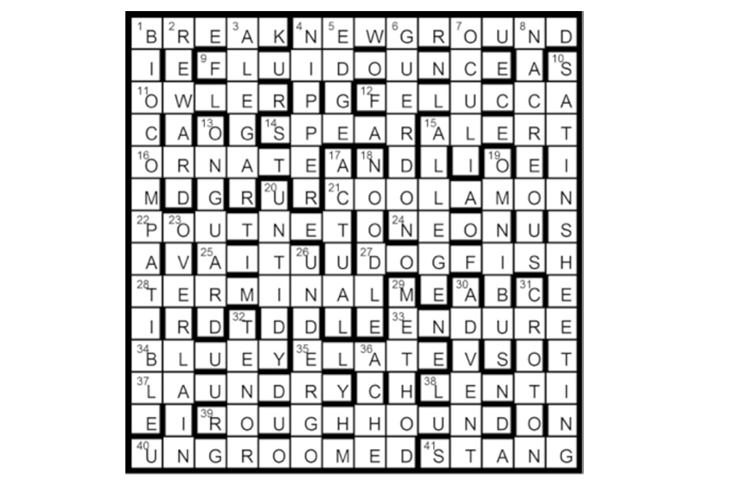 Parts indicated in clues in italics must each BREAK NEW GROUND (1A 4A), creating entries at 6, 13, 26, 39 and 40; definitions of these entries are 2, 15A, 33, 27 and 20.