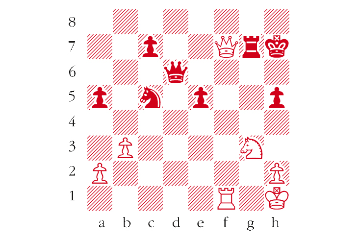 White to play. This position is from Anand-Caruana, Leuven Blitz 2018. How did Anand achieve a winning material advantage? Answers to me at The Spectator or via email to victoria@spectator.co.uk by 3 July. The winner will be the first correct answer out of a hat, and each week I shall be offering a prize of £20. Please include a postal address and allow six weeks for prize delivery.