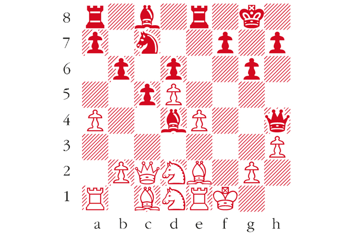 Black to play. This position is from Gurgenidze-Tal, Moscow 1957. What is the most direct way to break into the white position? Answers to me at The Spectator by Tuesday 25 September or via email to victoria@spectator.co.uk. There is a prize of £20 for the first correct answer out of a hat. Please include a postal address and allow six weeks for prize delivery.