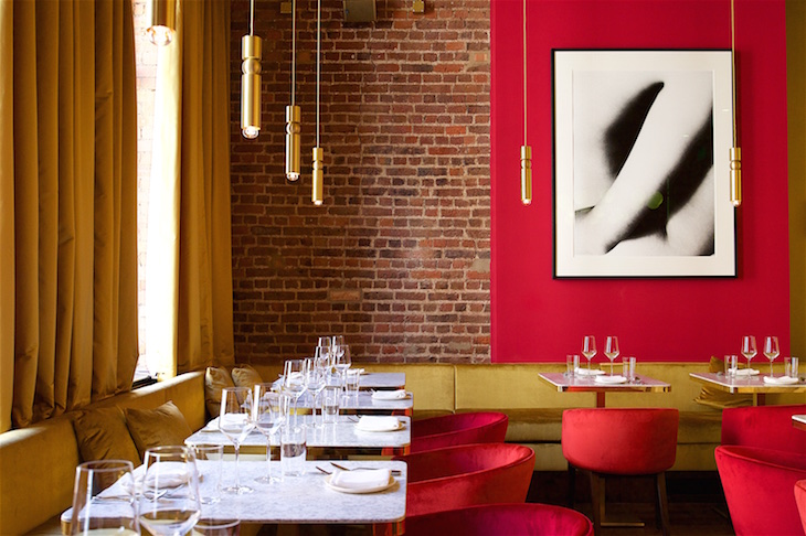 The dining room is velvet — red, like sitting on a cardinal’s knee, with yellow too — and there is a charming waiter with a beard so fiercely groomed I thought he might be Narnian. Are Narnians going to be deported, and if not, why not?