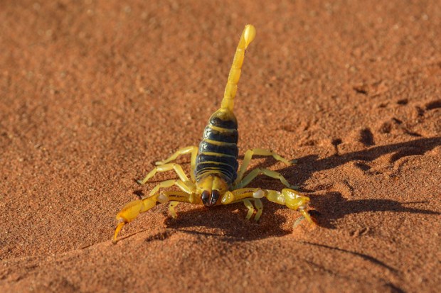 Before the natural rewilding began, I imagine there were always creatures like Parabuthus scorpions on the farm, and perhaps I began seeing them only because I started to know what I was looking for. They sit about on the rocks absorbing starlight and glowing electric blue on full moon nights. As long as they do not come into the house, we get along fine. We avoid killing them and we also try to stay nice to the snakes — apart from the black mamba that came into the office the other day and rose up in front of my wife Claire while she was on a telephone call to Los Angeles. I tried to persuade the animal to slither out of the door again but when he refused to go and sulked under the puddled curtains I had to fling my gumboots at him and then I bashed him to pieces with a walking stick.