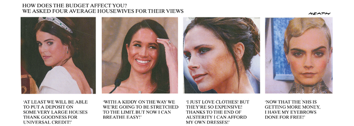 Alcohol duties were frozen, except for wine, up by 7p a bottle, which a trade spokesman curiously described as a ‘hammer blow’. Cigarettes went up by 33p, and would rise in future by inflation plus 2 per cent a year. The Housing Infrastructure Fund would get £500 million, towards the building of 650,000 houses, it was said. Universal Credit was ‘here to stay’, Mr Hammond declared, allocating £1.7 billion to in-work benefits and a billion to tide over new recipients. A tax on UK revenues of technology companies with more than £500 million global revenues would be imposed from 2020. Money was earmarked for potholes and for planting trees. Belfast would get a spare £2 million to help it recover from a fire at Primark. Japanese people would be able to use e-passport gates at airports. Relief on business rates would apply to lavatories available for public use. Budget documents confirmed that a 50p coin would mark Brexit next spring, though the Chancellor did not care to mention it in his speech.