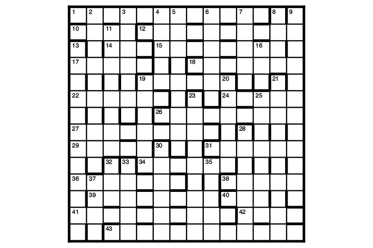 A first prize of £30 for the first correct solution opened on 21 January. There are two runners-up prizes of £20. (UK solvers can choose to receive the latest edition of the Chambers dictionary instead of cash — ring the word ‘dictionary’.) Entries to: Crossword 2389, The Spectator, 22 Old Queen Street, London SW1H 9HP. Please allow six weeks for prize delivery.