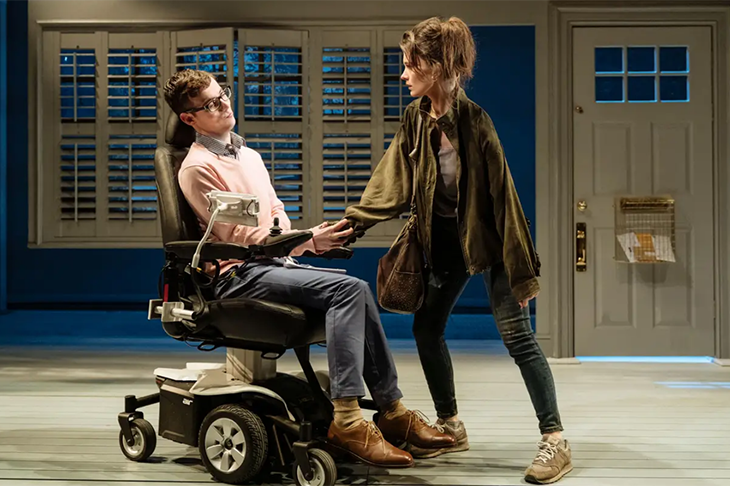 Hampstead has become quite a hit-factory since Ed Hall took over. His foreign policy is admirably simple. He scours New York for popular shows and spirits them over to London. His latest effort, Cost of Living, has attracted the film-star talent of Adrian Lester, who plays Eddie, a loquacious white trucker from Utah. (His ethnicity is made clear in the dialogue and the relevant lines have been left unchanged.) Earnest Eddie tells us about himself in a 15-minute monologue at the top of the show. Rather a clunky device. He’s a bookish teetotaller with a strong work ethic who appreciates the landscape of Utah, enjoys listening to Erik Satie’s over-played Gymnopédies, and spends his evenings and weekends caring for his -crippled ex-wife who lost both her legs in an accident.