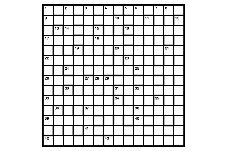 A first prize of £30 for the first correct solution opened on 22 April. There are two runners-up prizes of £20. (UK solvers can choose to receive the latest edition of the Chambers dictionary instead of cash — ring the word ‘dictionary’.) Entries to: Crossword 2402, The Spectator, 22 Old Queen Street, London SW1H 9HP. Please allow six weeks for prize delivery.