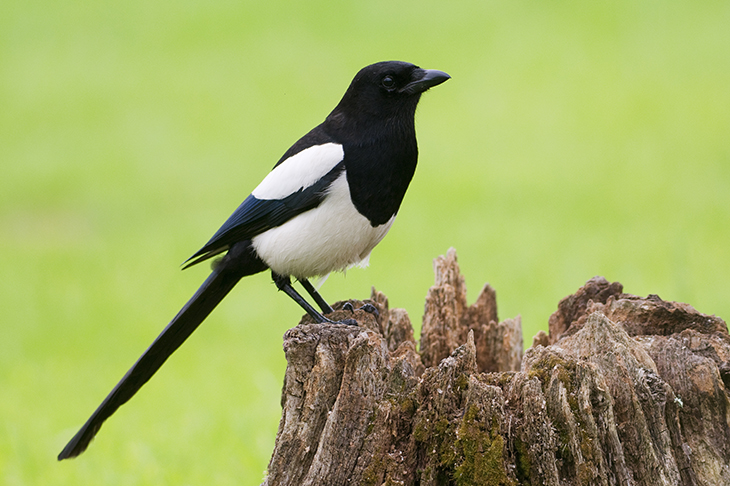 In English, the magpie got its name pie from the Latin pica. Like many animals (robin, donkey) it acquired a pet name — Mag-, for Margery or Margaret — tacked on as a prefix. And the baked kind of pie might very well have taken its name from the odds and ends that magpies collect.
