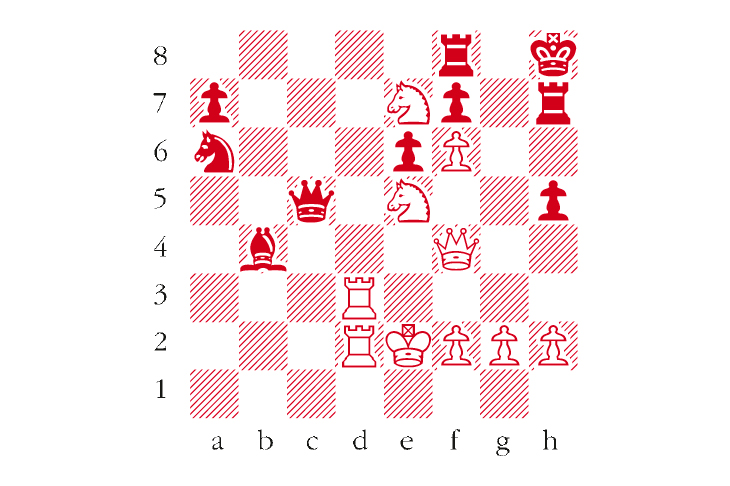White to play. This position is from Dubov-Giri, Moscow 2019. How did White conclude with a fine blow that forced a quick checkmate? Answers to me at The Spectator by Tuesday 28 May or via email to victoria@spectator.co.uk. There is a prize of £20 for the first correct answer out of a hat. Please include a postal address and allow six weeks for prize delivery.
