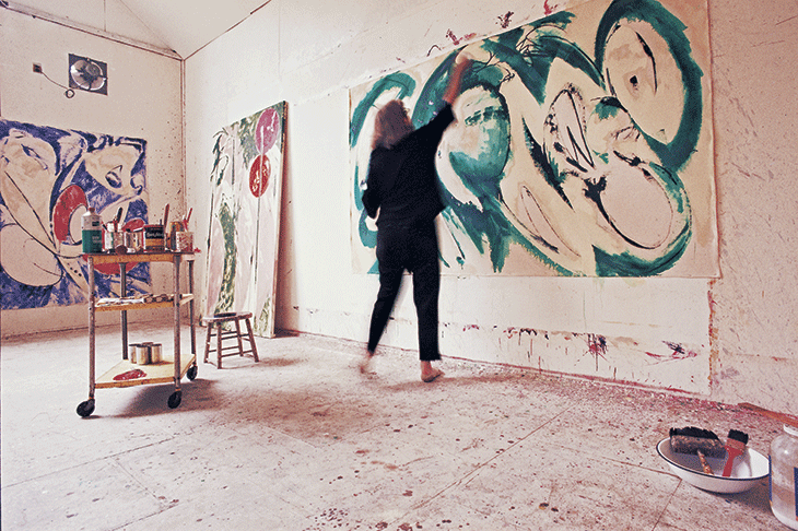 Except he was a foul-mannered, alcoholic, womanising, self-pitying, brawling brute. Krasner was on a trial separation in Paris in 1956 when she took the call telling her Jackson had killed himself and a passenger, a local beautician, in a driving-under-the influence car crash. Another passenger was Pollock’s mistress du jour, the ‘sensationally beautiful’ and sensationally ambitious Ruth Kligman, who survived to write a sensational account of her life with Pollock that was published in 1974. Krasner memorably said Kligman’s book should be called: ‘My Five Fucks with Jackson Pollock… because that’s all there were.’