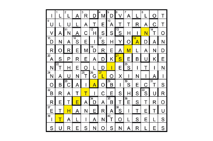 The group is ‘Les Nabis’ (anagram of ALBINESS (18)). Its members were VALLOTTON, DENIS, ROUSSEL, RANSON, SÉRUSIER, BONNARD and VUILLARD. The seminal work was THE TALISMAN (appearing diagonally from row thirteen). THE TALISMAN was to be shaded.