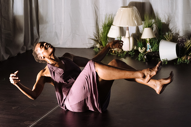 The rap music restarts. The woman lies down on her elbows and knees, and starts to cavort awkwardly without skill or grace. Is she being violated by a ghost? Is she performing yoga on the live rail of the Victoria line? She stands again. Table lamps scattered on the floor begin to flare and fade. The woman reads from scraps of paper littered around her. They contain hate mail. Revolting insults fill the air. African-Americans are cursed and vilified. Among the abuse is a claim that only one in 100 million black people is beautiful.