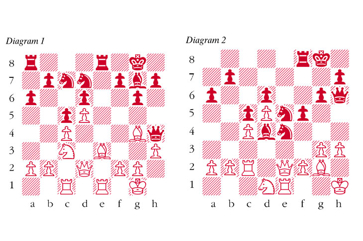 1 d4 d6 2 Nf3 g6 3 c4 Bg7 4 Nc3 Nf6 5 e4 0-0 6 Be2 Bg4 The bishop on c8 is often a problem piece in Benoni and King’s Indian systems, so Black aims to exchange it off at the earliest possible opportunity. It is clearly playable and even really strong GMs use it from time to time as a surprise weapon. 7 Be3 Nfd7 8 Rc1 8 Ng1 Bxe2 9 Ngxe2 is played a lot here, when 9 … e5 10 0‑0 exd4 11 Bxd4 Nf6 12 f3 Nc6 13 Be3 gives White a slight edge due to his extra space. 8 … c5 9 d5 Na6 10 0-0 Nc7 11 h3 Bxf3 12 Bxf3 Re8 13 Be2 a6 14 Qd2 e6 14 … b5! looks good here, the tactics proving satisfactory for Black; e.g. 15 b3 (or 15 cxb5 axb5 16 a3 c4 17 f4 Qb8) 15 … Rb8 16 f4 bxc4 17 bxc4 Na8! 18 Rb1 Qa5 with equality. 15 Rfe1 15 dxe6 Nxe6 16 Qxd6 Nd4 17 Bg4 Ne5 18 Qxd8 Raxd8 19 b3 h5 20 Be2 Nec6 gives Black good compensation for the pawn. 15 … exd5 16 exd5 Qh4 17 Bg4 (see diagram 1) 17 … Rxe3 In a rapid game the players are often trying to find ideas which eat into the opponent’s clock. The position after the imaginative 17 … Rxe3 may be objectively good for White, but it’s not easy to play at all. Black gets an unassailable dark-squared bishop, use of the e5- and d4-squares and a strong initiative. 18 Qxe3 18 Rxe3 f5 is very unclear. 18 … Bd4 19 Qd2 Ne5 19 … f5 is also possible. 20 Nd1 f5 21 Be2 Rf8 22 Bf1 White is struggling to find ways to improve his position. 22 … Ne8 23 Kh1 Nf6 24 g3 Qh5 25 Bg2 Ne4 Meanwhile Black can play a whole series of easy moves and by now stands better. 26 Qe2 Qh6 This retreat is unnecessary. 25 … Ng4 is very strong. 27 Rc2 This allows a winning tactic. Returning material with 27 Rc3 was the only chance. (see diagram 2) 27 … Bxf2 28 Qxf2 28 Nxf2 Nxg3+ forks king and queen. 28 … Nxf2+ 29 Nxf2 f4 30 g4 f3 31 Bf1 Rf4 32 Kg1 Qh4 33 Re4 Qg3+ 34 Kh1 Rxe4 35 Nxe4 Qe1 White resigns