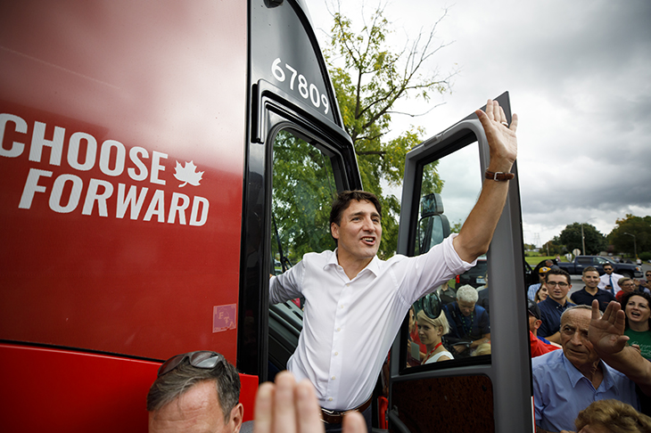 The election campaign was off to an unexciting start even by Canada’s standards. A well-known but fluffy incumbent, Liberal Justin Trudeau, faced a Conservative leader, Andrew Scheer, whose strategy had been to lay low. The Trudeau message these past four years has been total political correctness: equal numbers of male and female cabinet members, ‘peoplekind’ instead of ‘mankind’ and requiring summer employment project hirees to sign a pledge to uphold abortion rights. Probably as many Canadians groaned at these fatuities as were impressed by them, but it assisted the Liberals in taking votes from the left, as the Conservatives unhistrionically asked for common sense. The Liberal plan for 2019 was to send Justin around cooing about good things while his campaign office smeared Conservative candidates as closet homophobes, misogynists and bigots. It was a sensible plan for a party that can’t really ask to be re-elected on its record. Then it blew up.