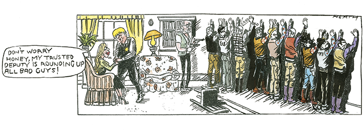 Extinction Rebellion, having made a mess of spraying fake blood on to the Treasury from a fire engine, turned its attention to blocking roads in central London. Tents were pitched in Whitehall. Some 600 people were arrested in two days. At the launch of Charles Moore’s final volume of his biography of Margaret Thatcher, Boris Johnson referred to them as ‘unco-operative crusties’, in ‘hemp-smelling bivouacs’.