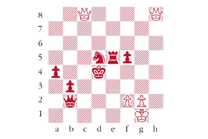 White to play. Dahl-Kolbus; Isle of Man, 2019. In this game between two Manx players, White had promoted a pawn earlier but finishing off the game is not easy. Here, Dahl found an elegant winning move. Can you do as well? Answers to ‘Chess’ at The Spectator by Tuesday 5 November or via email to victoria@spectator.co.uk. There is a prize of £20 for the winner. Please include a postal address and allow six weeks for prize delivery.
