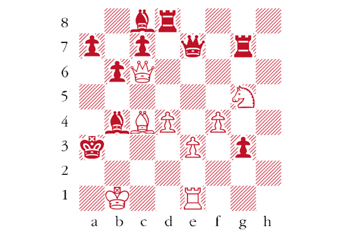 Dubov-Svane, White to play. Later in the event, Dubov played another masterpiece, sacrificing a rook to reach this extraordinary position. It takes one more delicate sacrifice to conclude the attack. Which one? Answers to ‘Chess’ at The Spectator by Tuesday 19 November or via email to victoria@spectator.co.uk. There is a prize of £20 for the first correct answer out of a hat. Please include a postal address and allow six weeks for prize delivery.