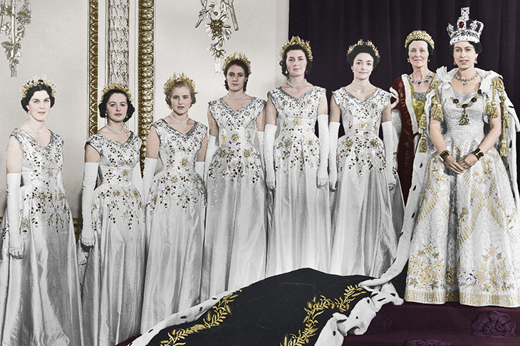 Anne was one of the six long-white-gloved Maids of Honour holding the Queen’s train at the Coronation. Her description of that day — and of the rehearsals before it, for which the Duke of Norfolk had drawn 94 diagrams — is sublime. She still can’t get over her luck at having been ‘the right person in the right place at the right time’ to have that honour. In the middle of the service, having eaten no breakfast, she felt dizzy. She broke the vial of smelling salts she’d been given for just this eventuality, but they didn’t work. ‘I can’t faint in front of the entire British Empire,’ she told herself. Just in time, Black Rod (Lieutenant General Sir Brian Horrocks) saw her swaying and grabbed hold of her to support her.
