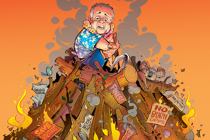 What has changed significantly is not the climate but the whole approach to managing Australia’s landscape. As David Evans wrote in an article six years ago — bushfires being the gift that goes on giving for sceptical journalists — ‘the first Europeans in Australia noted over and over that Australia looked like a country estate in England, like a park with open woodlands, extensive grassy patches and abundant wildlife.’ There is an account from the early 1800s of driving a horse and carriage from Hobart to Launceston, before there were any roads, simply by driving along the grassy park underneath the tree canopies. ‘Try doing that today,’ Evans wrote.