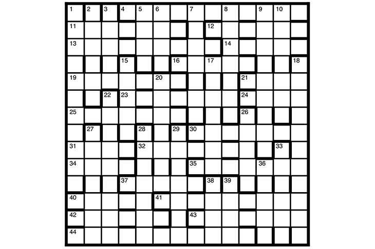 A first prize of £30 for the first correct solution opened on 24 February. There are two runners-up prizes of £20. (UK solvers can choose to receive the latest edition of the Chambers dictionary instead of cash — ring the word ‘dictionary’.) Entries to: Crossword 2443, The Spectator, 22 Old Queen Street, London SW1H 9HP. Please allow six weeks for prize delivery.