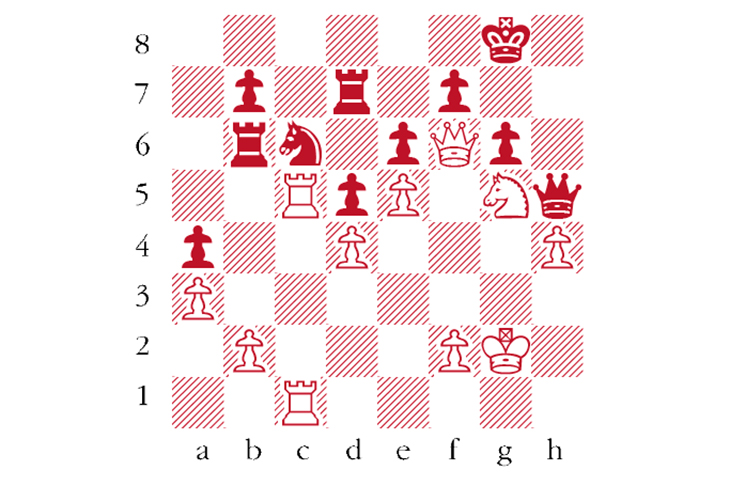 White to play, Dubov–Artemiev, Wijk aan Zee 2020. White is pressing here, but Black seems to have everything covered. Which subtle move allowed Dubov to force a quick resignation? Answers to ‘Chess’ at The Spectator by Tuesday 18 February or via email to victoria@spectator.co.uk. There is a prize of £20 for the first correct answer out of a hat. Please include a postal address and allow six weeks for prize delivery.