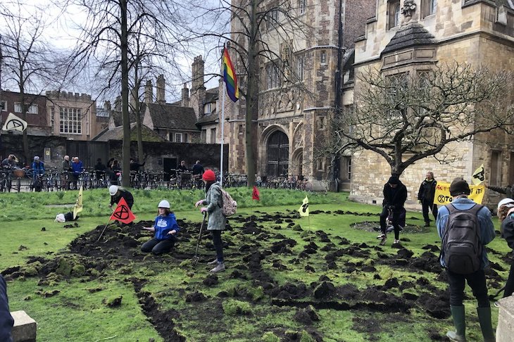 XR are digging up private property unchallenged at Trinity college Cambridge.