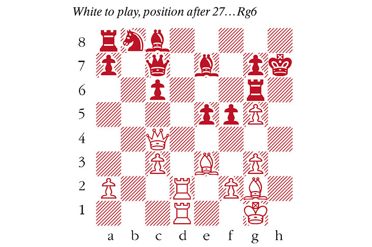 1 d4 Nf6 2 c4 e6 3 Nc3 Bb4 4 Nf3 d5 5 Qb3 c5 6 dxc5 Na6 7 cxd5 Nxd5 8 c6 Qa5 9 Bd2 bxc6 10 g3 Nxc3 11 bxc3 Be7 12 Bg2 O-O 13 O-O e5 14 Qc2 Qc7 15 Qe4 f6 16 Qc4+ Kh8 17 Be3 Nb8 18 Rfd1! A key moment. Yu offers the e2 pawn to build on his initiative. 18…Ba6 I suspect So grabbed the pawn with reluctance. 18…Nd7 looks prudent, but is actually worse: 19 Ng5! fxg5 20 Qxc6 Qxc6 21 Bxc6 Rb8 22 Bxd7 leaves White well ahead. 19 Qe6 Bxe2 20 Rd2 Ba6 21 Nh4 Bc8 22 Qc4 f5 23 Nf3 h6 24 Rad1 Kh7 25 h4 Cleverly anticipating Black’s next move, which prepares Bc8-e6 25… Rf6 26 Ng5+! hxg5 27 hxg5 Rg6 (see diagram) 28 Bd5! A devastating thrust, as the bishop is immune here. The threat is not so much Qc4-h4+, which may be met by …Rg6-h6, but rather the simple Kg1-g2! followed by Rd1-h1+. 28…f4 There was nothing better: 28…Rxg5 29 Kg2 Rh5 30 Bf3 leaves the rook nowhere to run, or after 28…Ba6 29 Bg8+ Kh8 30 Qf7 is crude but effective. 29 Be4! A deft change of direction: now Qc4-f7 is a huge threat. 29… Bxg5 30 Rd6 Bf6 31 Kg2 f3+ 32 Kxf3 Bg4+ 33 Kg2 Bxd1 34 Rxd1 Despite his extra rook, 35 Rh1+ is unstoppable so Black resigns.
