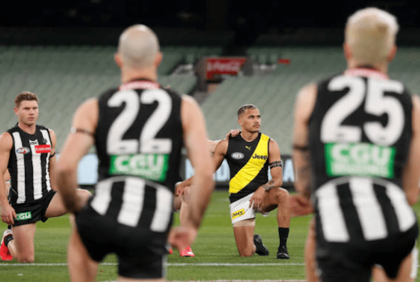 Before round two kicked off on 11 June, players from Collingwood and Richmond announced they would “take a knee” in support of Black Lives Matter, the international protest movement which claims to oppose police violence against black people. By the end of the round, all players at every match had performed the ritualistic pre-game kneeling. Like true rebels, this was all carried out with the approval and support of their clubs and the AFL administrators.