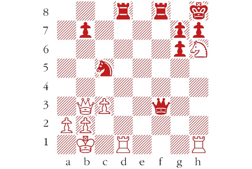 White to play. From the ridiculous to the sublime. According to the ‘Chess Notes’ website, a game won by Edward Gestesi in Paris, 1911. Which move forces a quick checkmate? Answers should be emailed to chess@spectator.co.uk by Monday 6 July. There is a prize of £20 for the first correct answer out of a hat. Please include a postal address and allow six weeks for prize delivery.