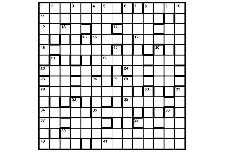 A first prize of £30 for the first correct solution opened on 19 October. There are two runners-up prizes of £20. Please scan or photograph entries and email them (including the crossword number in the subject field) to crosswords@spectator.co.uk – the dictionary prize is not available. We will revert to postal entries one day. Please allow six weeks for prize delivery.