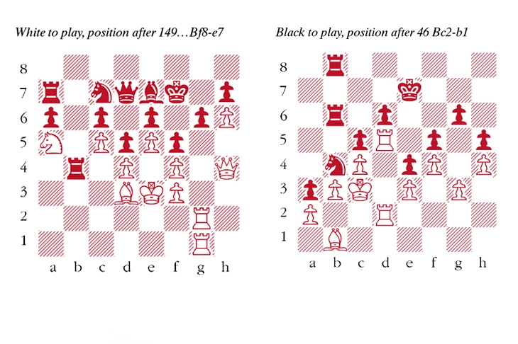 We join the game at move 150(!) – see left of diagram.