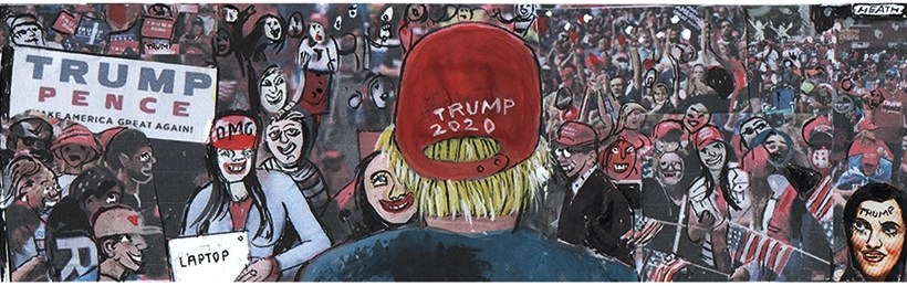 Pensacola, Florida, is different. And not just because Air Force One is soon to arrive. In the airfield where it will land, thousands of people stream through the metal detectors and await the main act. It is hard to know whether the warm-up songs blasted out through loudspeakers have been chosen with too much thought or none at all. ‘My Way’, ‘Losing My Religion’, ‘Rocket Man’ and ‘Don’t Stop Believing’ can all be interpreted in several ways. Gounod’s ‘Ave Maria’ is abruptly interrupted to make way for Florida’s governor, Ron DeSantis. The theme song from Titanic is played twice, and ‘YMCA’ — which has become the theme song of the re-election campaign — comes on before the President’s arrival. The crowd is thrilled, dancing about with joy. One of the addresses ahead of the President is from a pastor who prays for the re-election of Donald Trump. He says he believes that because of what the President has done for Israel (another normalisation treaty signed that day), Trump will be rewarded eternally. It summons up the disturbing image of the world’s humblest arriving into heaven to find themselves greeted by the man who recently introduced himself as ‘Your favourite president’.