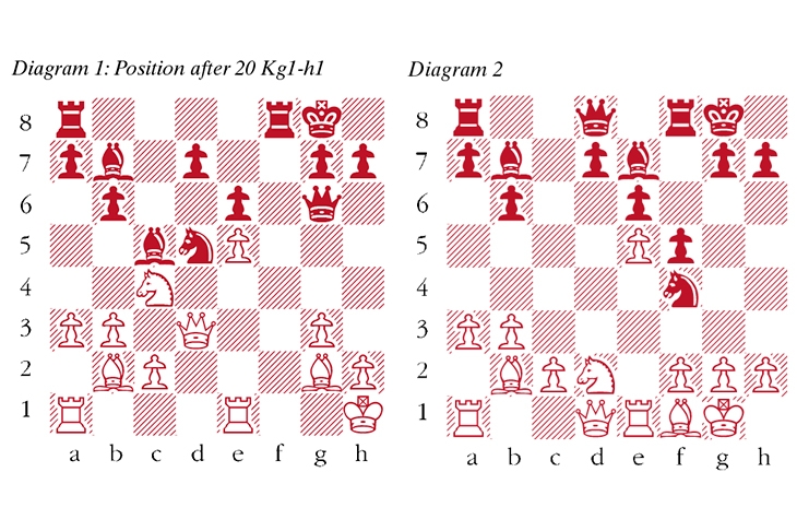 The first diagram shows an attractive specimen from a recent online blitz game: Black to play and win. The winning move was played by Dominic Lawson — a former editor of this magazine and the current president of the English Chess Federation. White is under pressure, which he hopes to relieve by exchanging the queens. The move 20…Nf4!! destroys that hope, a vibrant fork against Qd3 and Bg2, enabled by the pin on the g-file and a striking diagonal crossfire. Dominic was kind enough to share the game with me: