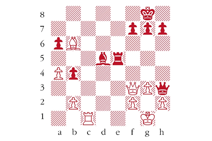 White to play. A position taken from Chess Improvement (perhaps from Luchowski–Gridnew, Moscow 1992.) Black’s menacing pieces make the situation look desperate. How can White turn the tables? Answers should be emailed to chess@spectator.co.uk by Monday 7 December. There is a prize of £20 for the first correct answer out of a hat. Please include a postal address and allow six weeks for prize delivery.